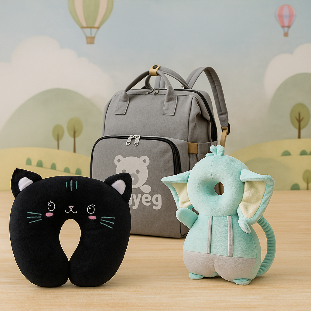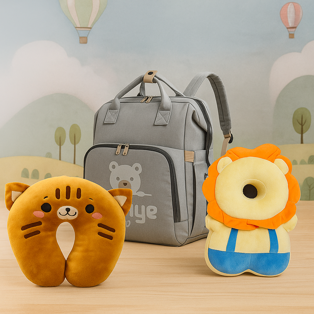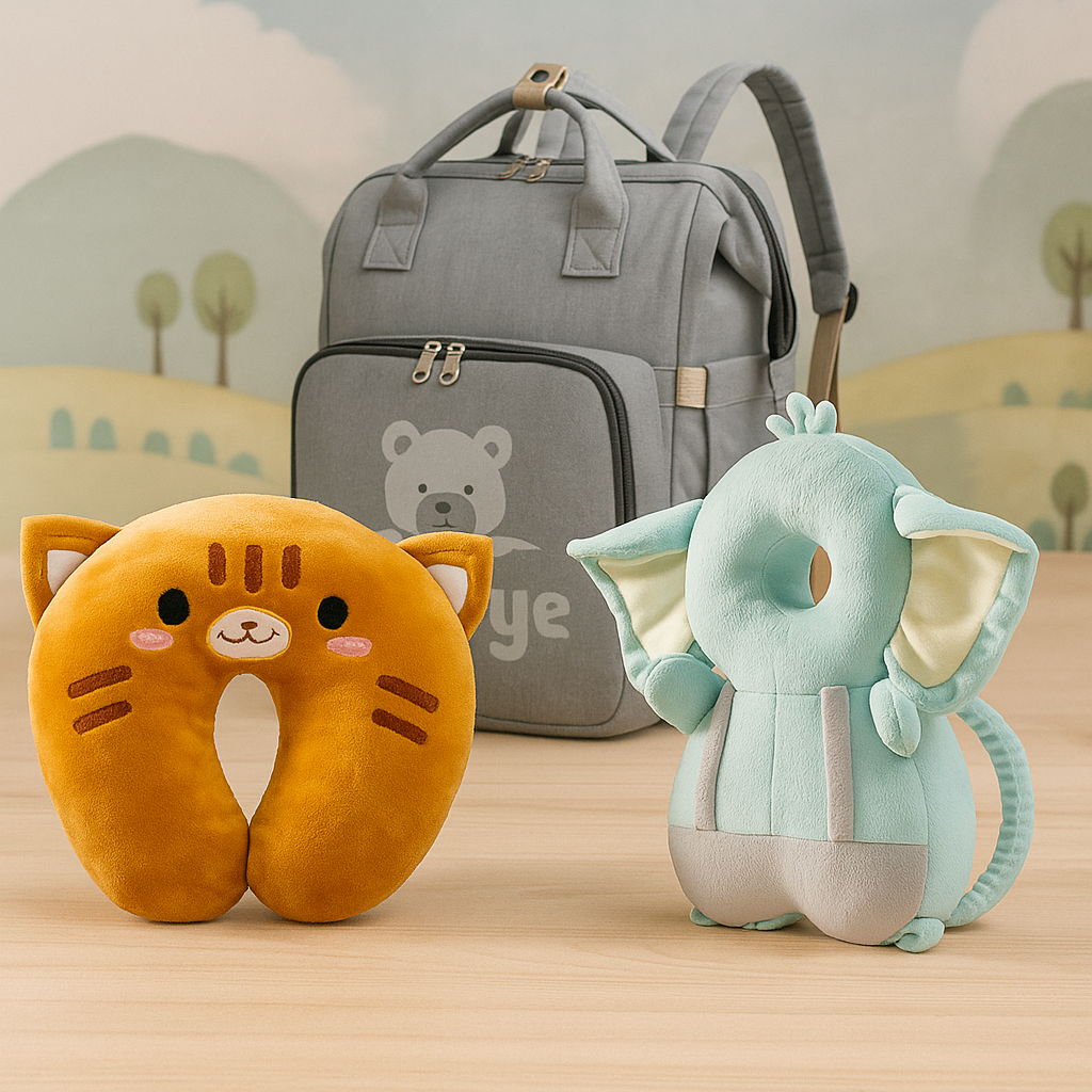 El cojín de cuello ergonómico es el compañero ideal en viajes y paseos: brinda un soporte suave que evita posturas incómodas y garantiza un descanso seguro. Por su parte, el cojín anticaídas acompaña a tu bebé en sus primeros intentos de gateo, protegiendo su cabecita y espalda frente a pequeñas caídas.