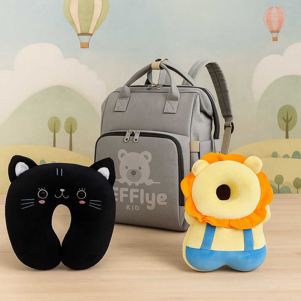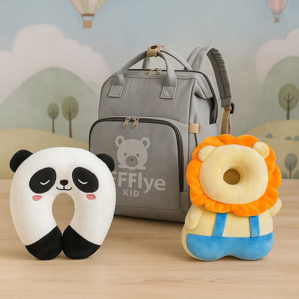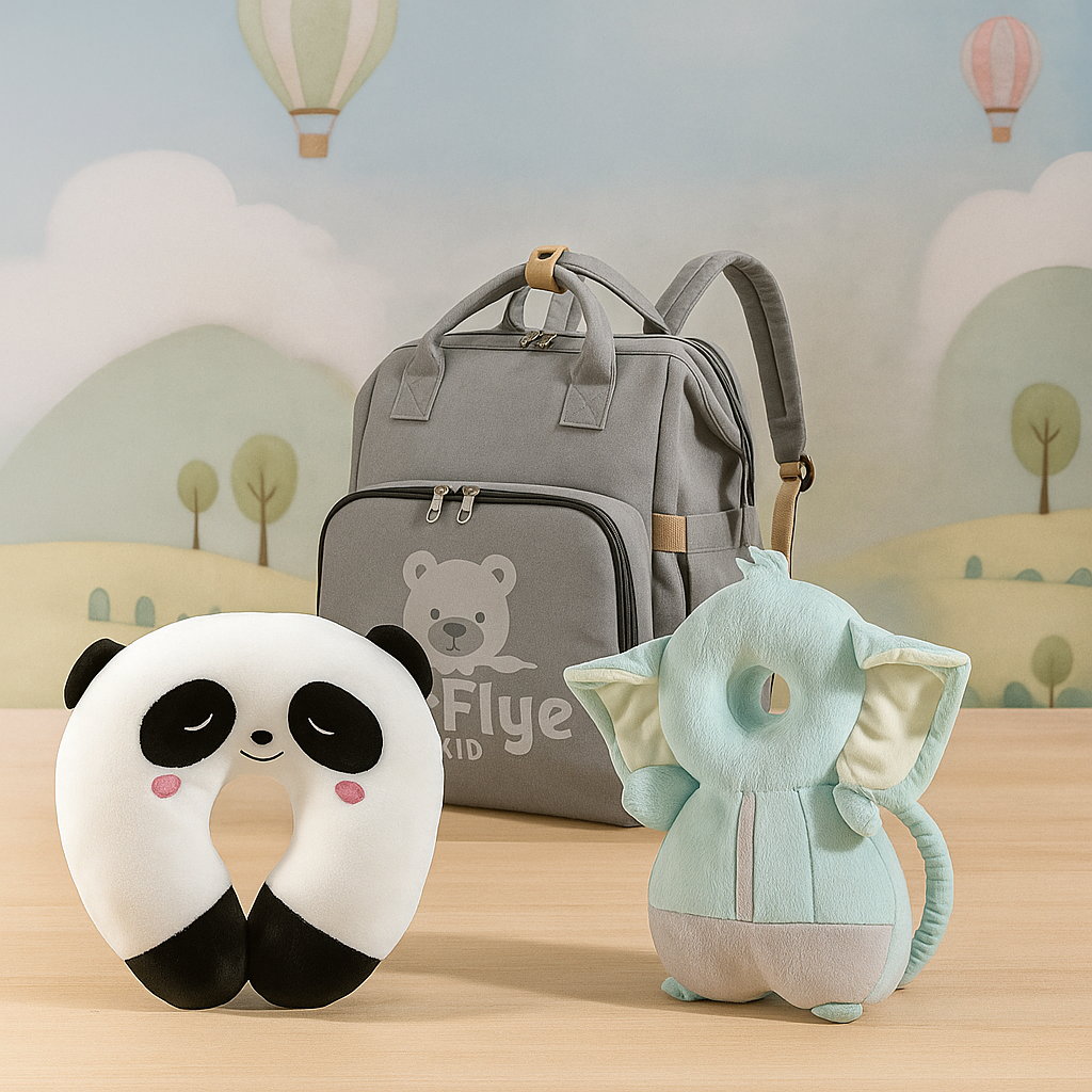 El cojín de cuello ergonómico es el compañero ideal en viajes y paseos: brinda un soporte suave que evita posturas incómodas y garantiza un descanso seguro. Por su parte, el cojín anticaídas acompaña a tu bebé en sus primeros intentos de gateo, protegiendo su cabecita y espalda frente a pequeñas caídas.